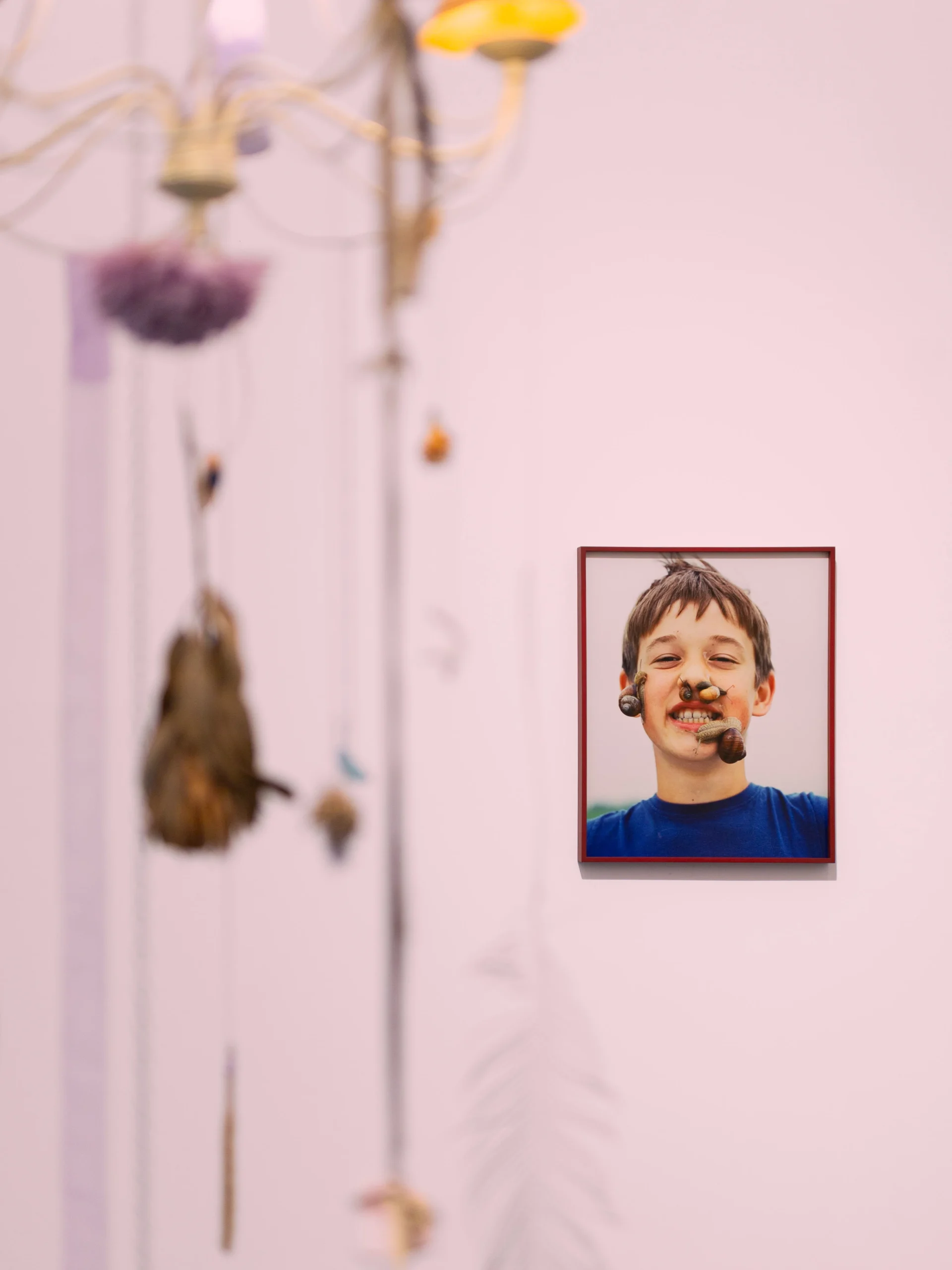 The situation piles up when we want to photograph a person. Getting to the point of photographing “someone” has always been difficult for me. I fantasize about Teresa’s photos. It seems to me that they were created with ease, as if the bond with the characters had been established without effort, organically. For me, creating a bond takes time. In the first spring of the pandemic, I moved back to my family home in Silesia. The days were getting longer, so we started spending more time in the garden. I sowed vegetables and built trellises for beans from long, flexible birch branches. My brothers’ children often visited us. Situations would happen and images would start to flicker. I was inspired by their games and antics – a snail stuck to their face, funny make-up, petting roosters. For them, being photographed was fun, they didn’t ask why. Maybe they felt seen? Does it mean anything? To be seen in your childhood by the adult eye of the camera?
