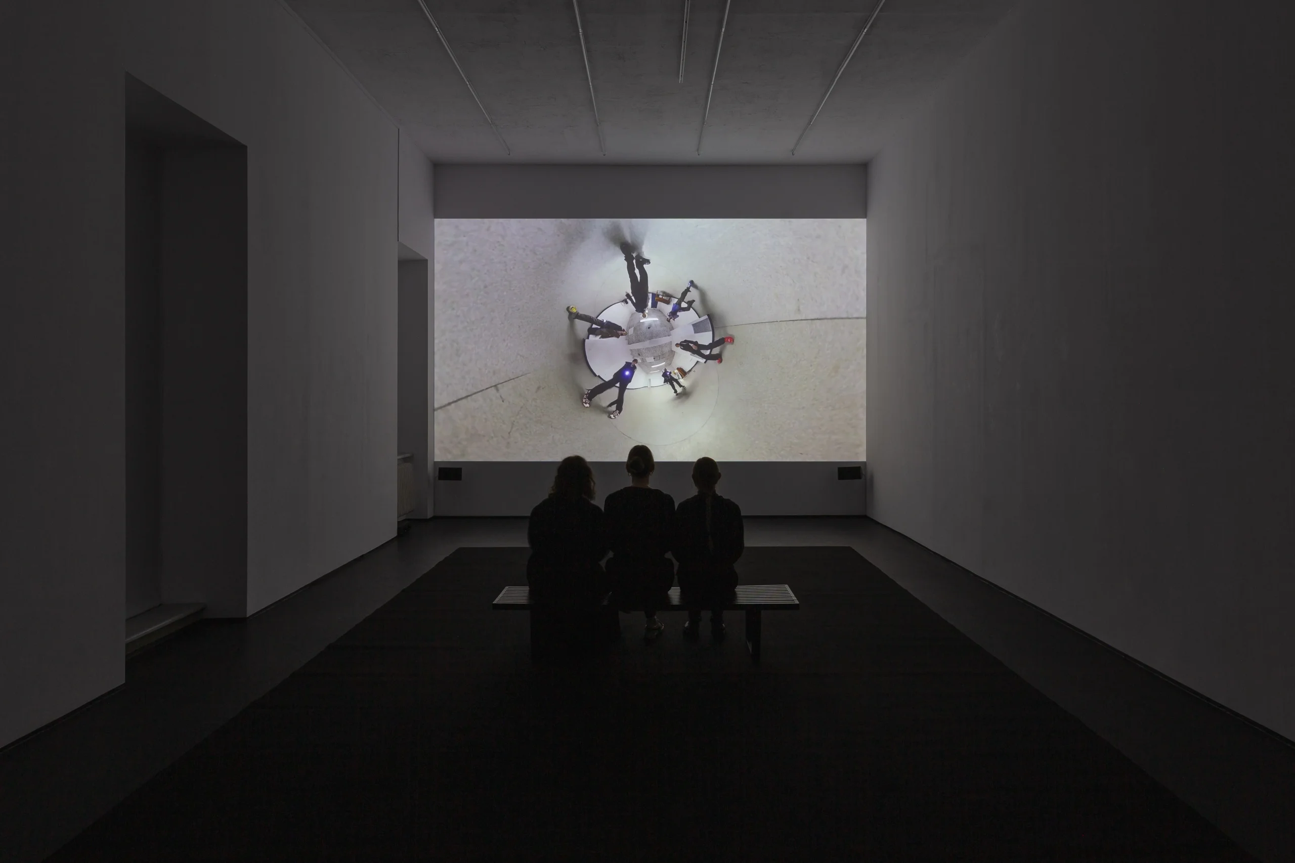 KINO brings together video works that explore “after the end” as an ongoing condition of erosion and reorganization. Landscapes marked by technological excess, environmental damage, and political upheaval become stages for suspended transformation, while systems of power persist in altered forms. Moving between affect and analysis, the artists often employ seductive imagery, drawing viewers in through atmosphere, while subtly unsettling familiar narratives. Rather than offering clear redemption or finality, the works reflect a liminal present in which established orders lose their authority and other ways of relating—to history, responsibility, and the more-than-human world—begin to take shape.